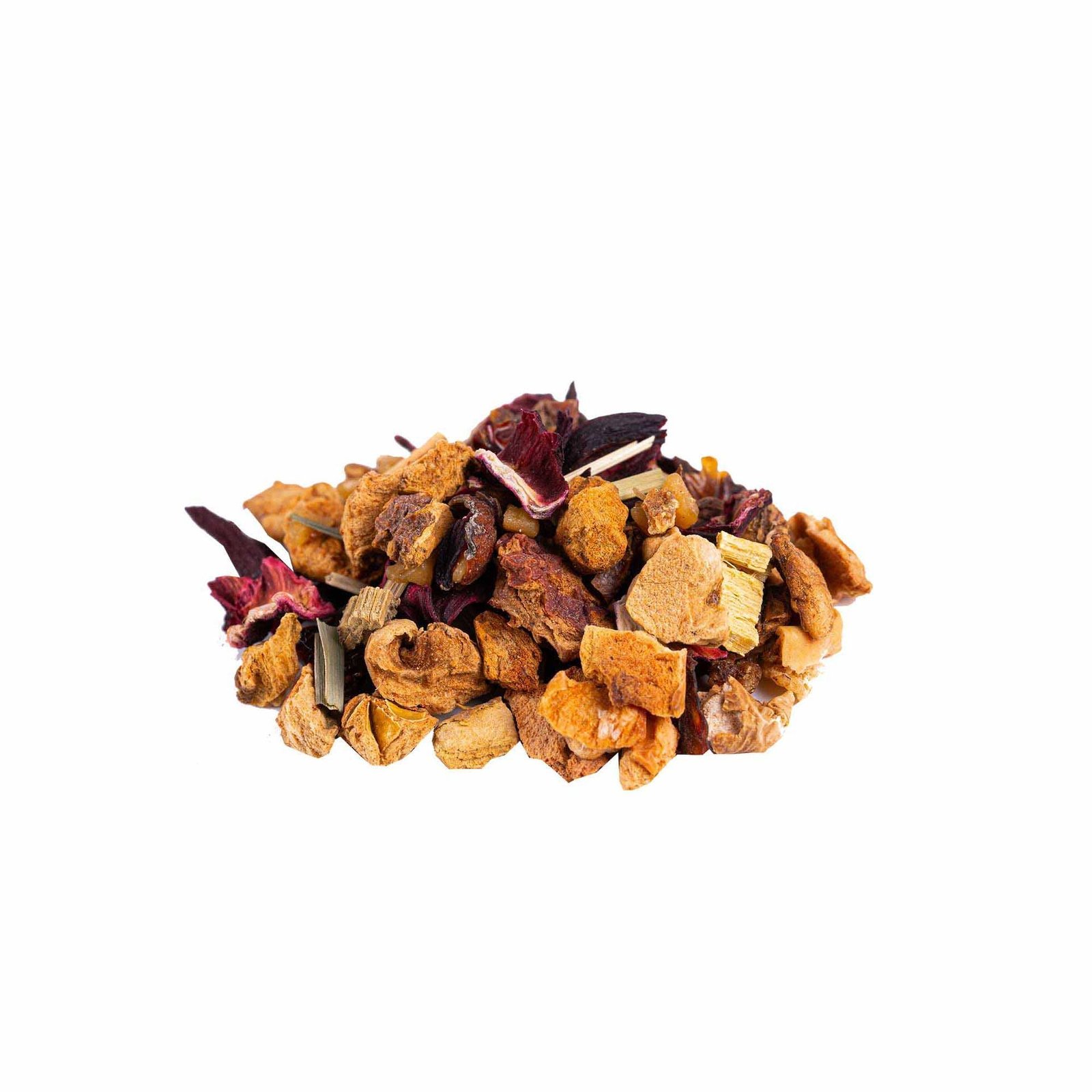 Яблуко, гібіскус, шипшина, цедра лимона, солодка корінь, лемонграс, КАРАМЕЛЬ (ЦУКОР, ГЛЮКОЗНИЙ СИРОП, ВЕРШКИ, ВЕРШКОВЕ МАСЛО, СІЛЬ ГЮЕРАНД), натуральний аромат.