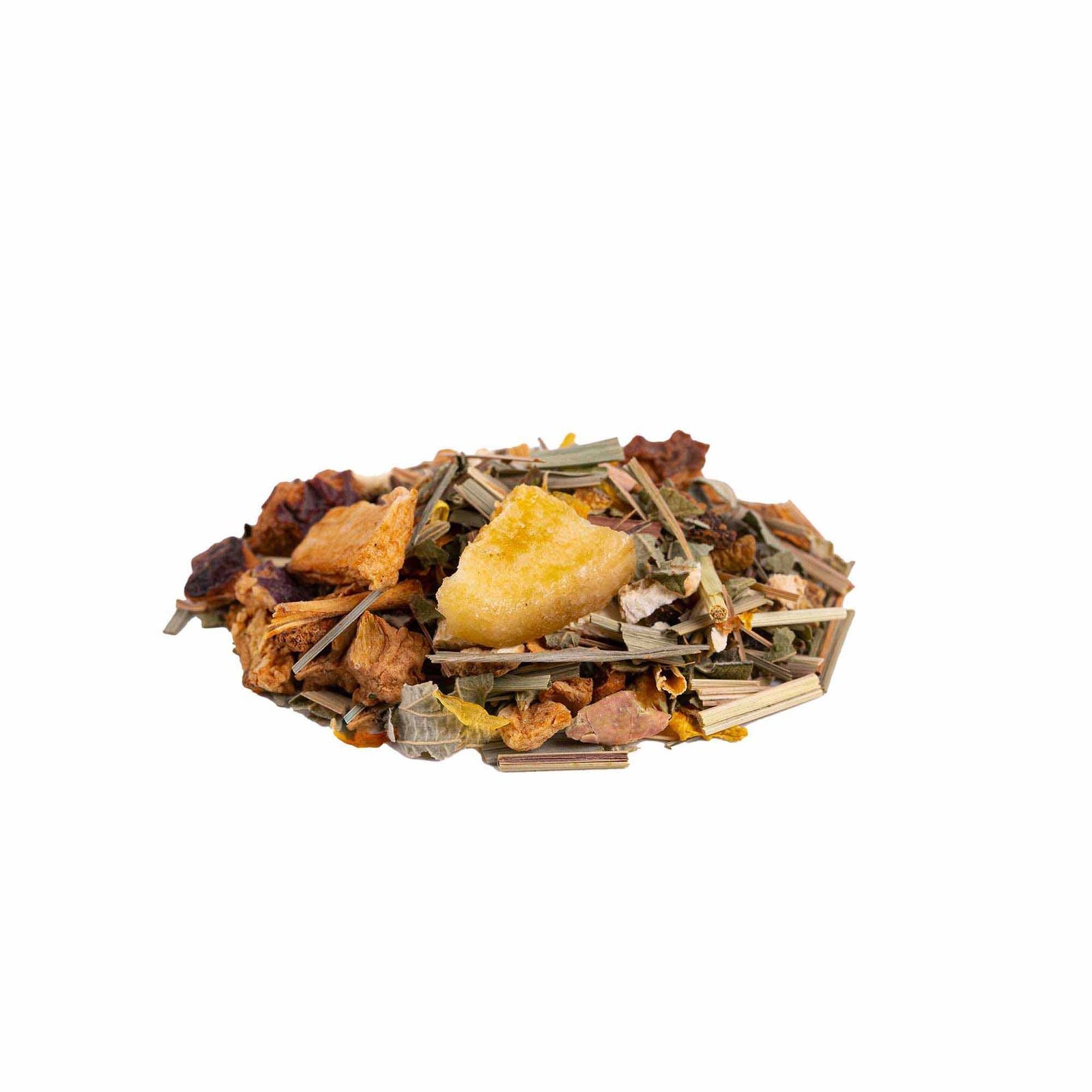 Вітайте день з бурхливим сонячним світлом у нашій суміші “Сонячний Пляж”. Ця радісна інфузія схожа на перший промінь світла, що визирає над горизонтом, поєднуючи солодкість банана і яблука з пряною свіжістю лимона і лайма. Додаток фенхелю додає нотку таємничості, а пелюстки чорнобривців надають вашій чашці золотавого сяйва. Це ідеальний заклик до пробудження, обіцяючи наповнити ваше ранок оптимізмом і енергією.